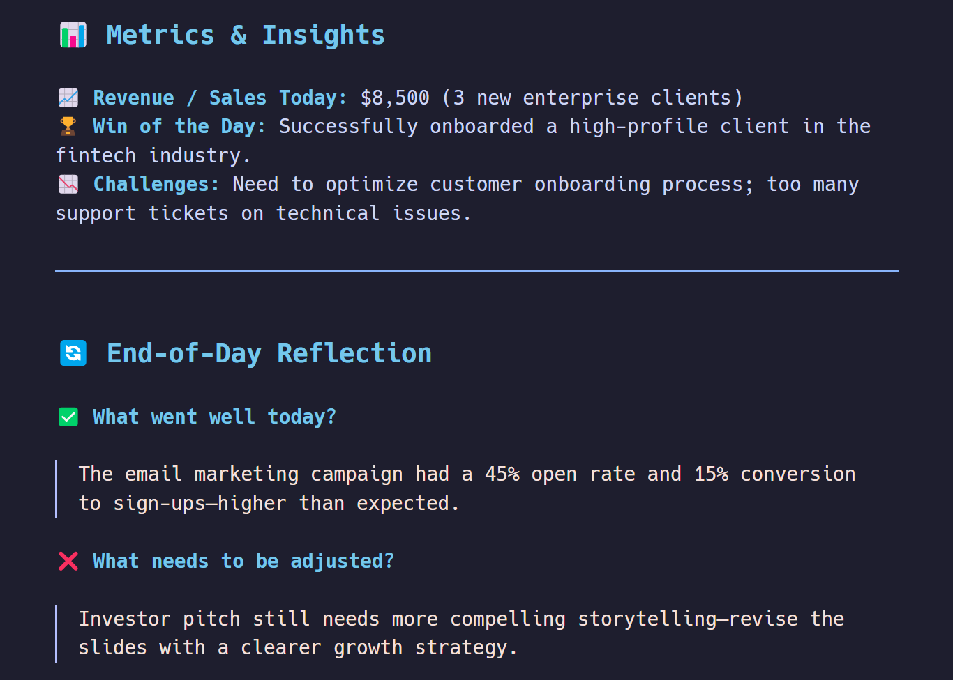 ✅ Structured Reflection & Planning – End each day with clarity and direction.